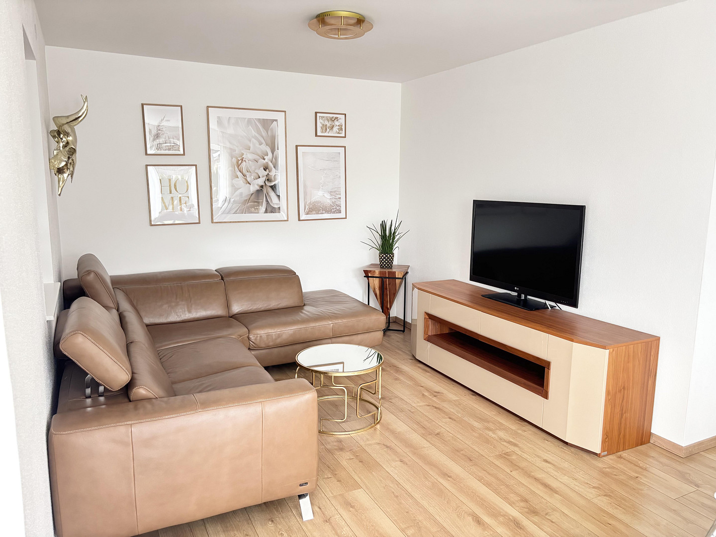 The house is also equipped with high-quality Schlotterer roller shutters, which offer optimum protection from the sun and privacy. The exclusive, custom-made Dan fitted kitchen with modern brand appliances leaves nothing to be desired and makes cooking a pleasure. High-quality interior doors from Kunex underline the stylish character of the home. Fine laminate flooring creates a warm, cozy ambience throughout the living area, while tasteful, durable tiles in the bathroom, WC and entrance hall guarantee timeless elegance and easy maintenance.