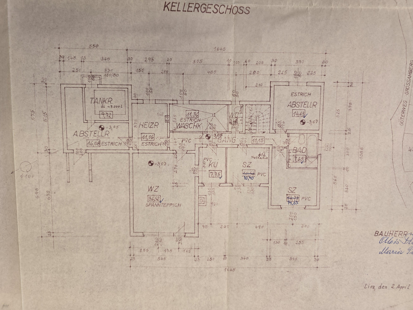 4048 Puchenau (Oberpuchenau) – Oberösterreich, ÖsterreichThe house was built in 1974 (occupied Dec 1974). In 1978, the house was extended by an extension on the west side, which has not yet been fully completed. The oil heating was renewed in 2009. The residential unit on the upper floor was renovated in 2010 (kitchen/bathroom incl. piping) The garden apartment is in need of renovation. Windows in the garden apartment and in the extension renewed approx. 2018 (plastic, triple-glazed, internorm)