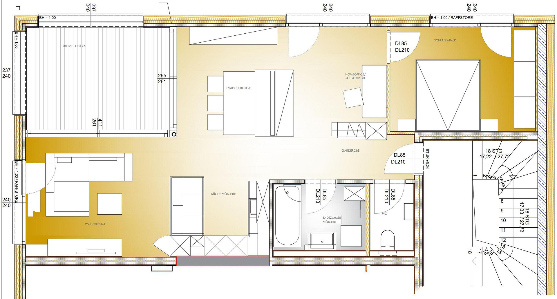 The 11.9 m² loggia invites you to relax at sunset and extends the living space into the open air.