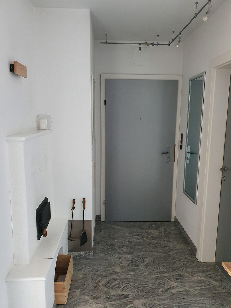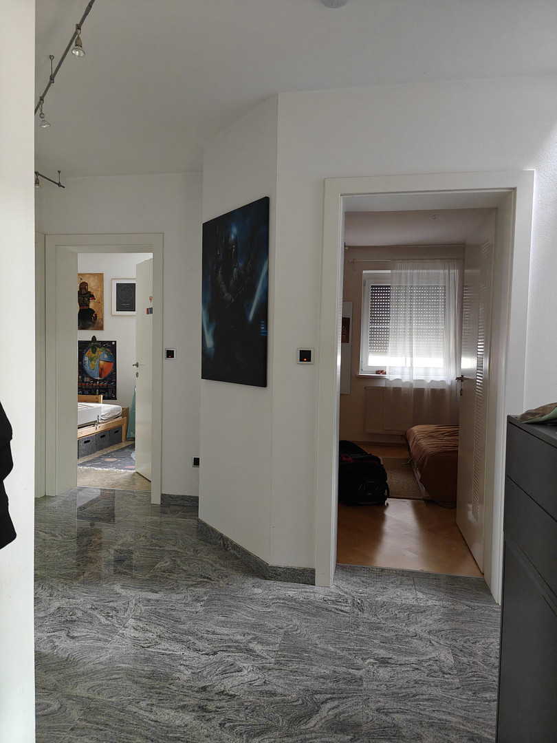 Maisonette in a 4 party house on the second floor. 4 rooms, large living room, 1.5 kitchens, bathroom modernized in 2021 with walk-in shower, separate toilet, infrared sauna, balcony and 2 carport spaces, one of which has a cellar replacement room. Stone, tile, cork and parquet floors. Entrance hall, bathroom, WC with underfloor heating and large tiled stove in the living room. Windows with electronic roller blinds and fly screens, as well as a solar system on the roof for hot water.