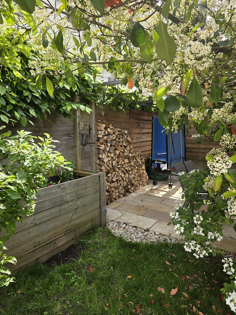 The south-facing garden offers a good balance between planted areas and open spaces. Two terraces with natural stone offer enough space for relaxation and coziness.