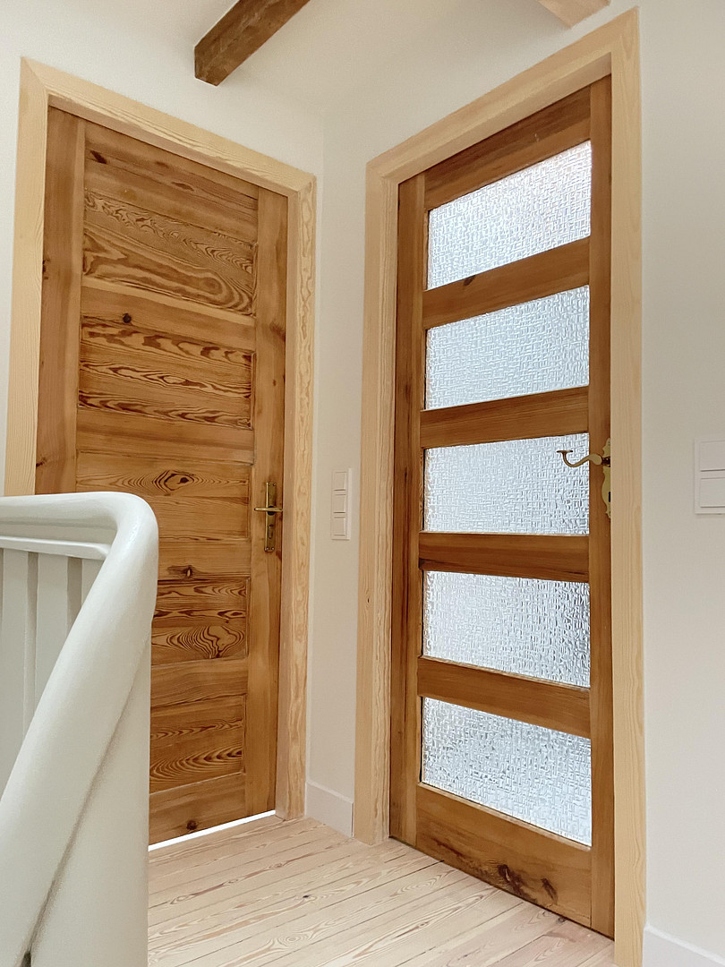 Historic elements such as all the original old doors were completely preserved and professionally refurbished. They shape the authentic character of the house and deliberately contrast with the completely renovated technical infrastructure.