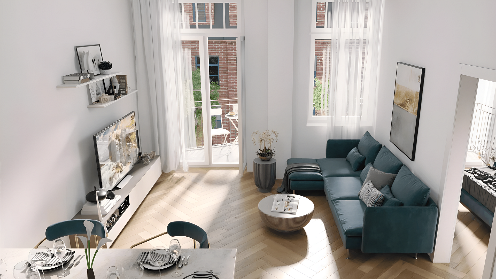 Die 19 Wohnungen (1 bis 3 Zimmer) verfügen alle über einen hellen Flur und sind zwischen 25 m² und 70 m² groß. Die hellen Wohnzimmer bieten eine integrierende bodentiefe Fensterfront. Alle Wohnungen verfügen über eine Fußbodenheizung.