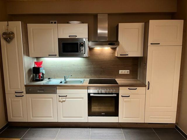 --> Vollausgestattete Küche mit Spülmaschine, Backofen, Herd, Kaffeemaschine, Wasserkocher, großem Kühlschrank mit Gefrierfach und allem nötigen Geschirr