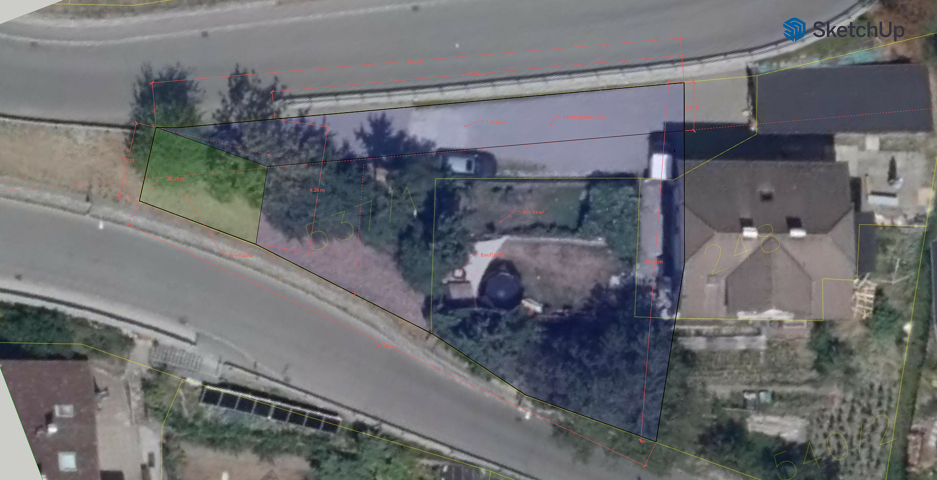Teilungsvorschlag bei Fotos mit Dienstbarkeit und davon circa 50m Freifläche