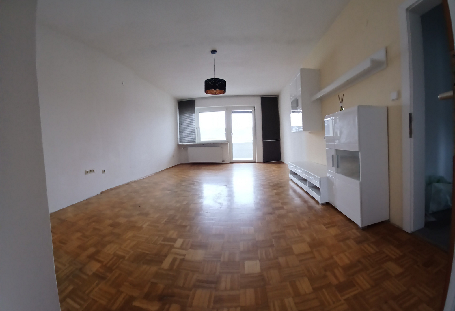 Über das Wohnzimmer kommt man ins Schlafzimmer und auf der gegenüberliegenden Seite liegt die Loggia.