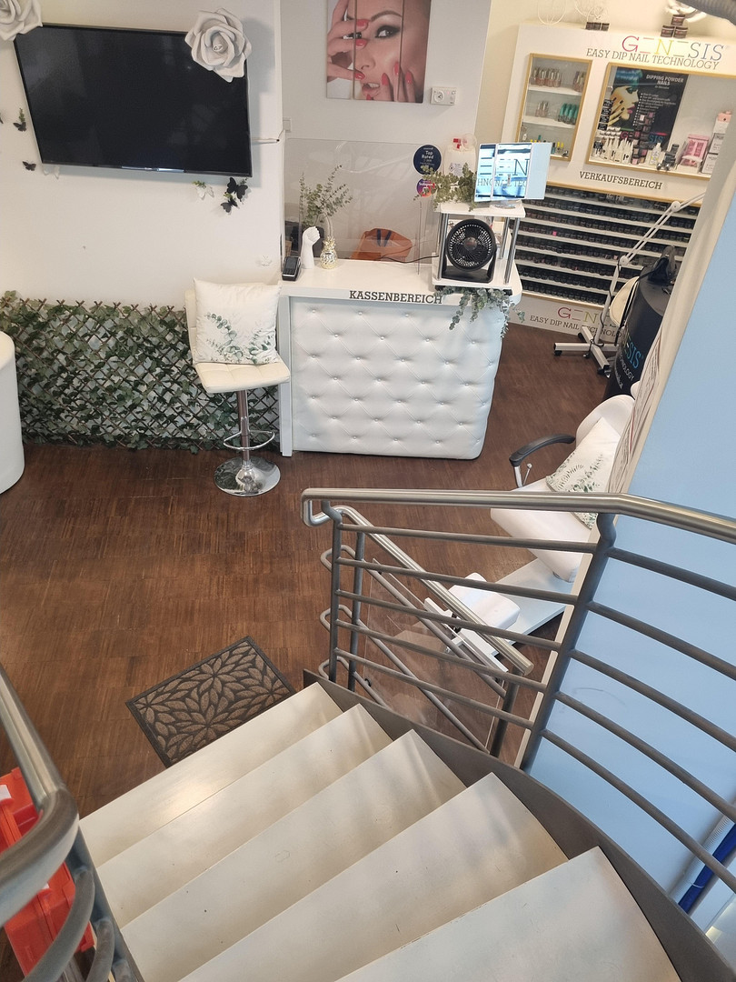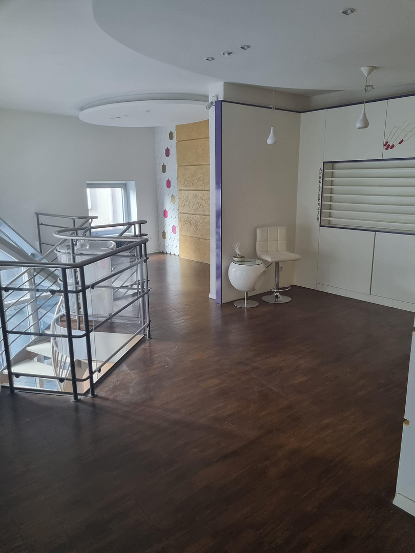 100m2 auf 3 Ebenen aufgeteilt zu je 33m2, OG, EG und UG, Strasseneingang komplett aus Glass, EG und OG offener Arbeitsbereich, im UG geschlossene Räume WC, Küche, Lager und Garderobe