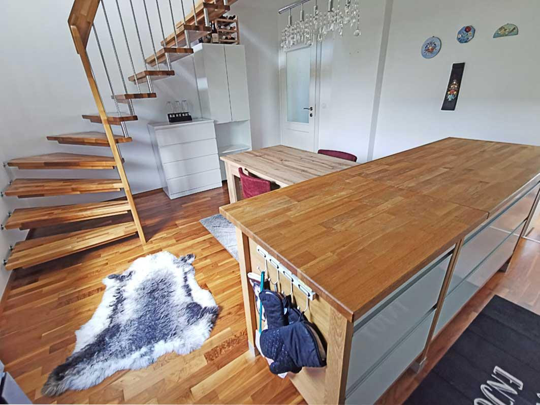 Die Wohnung erstreckt sich vom Obergeschoss bis ins gemütlich ausgebaute Dachgeschoss.