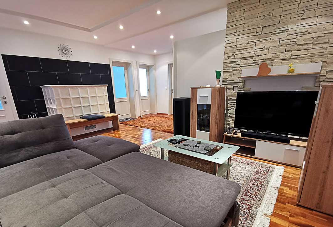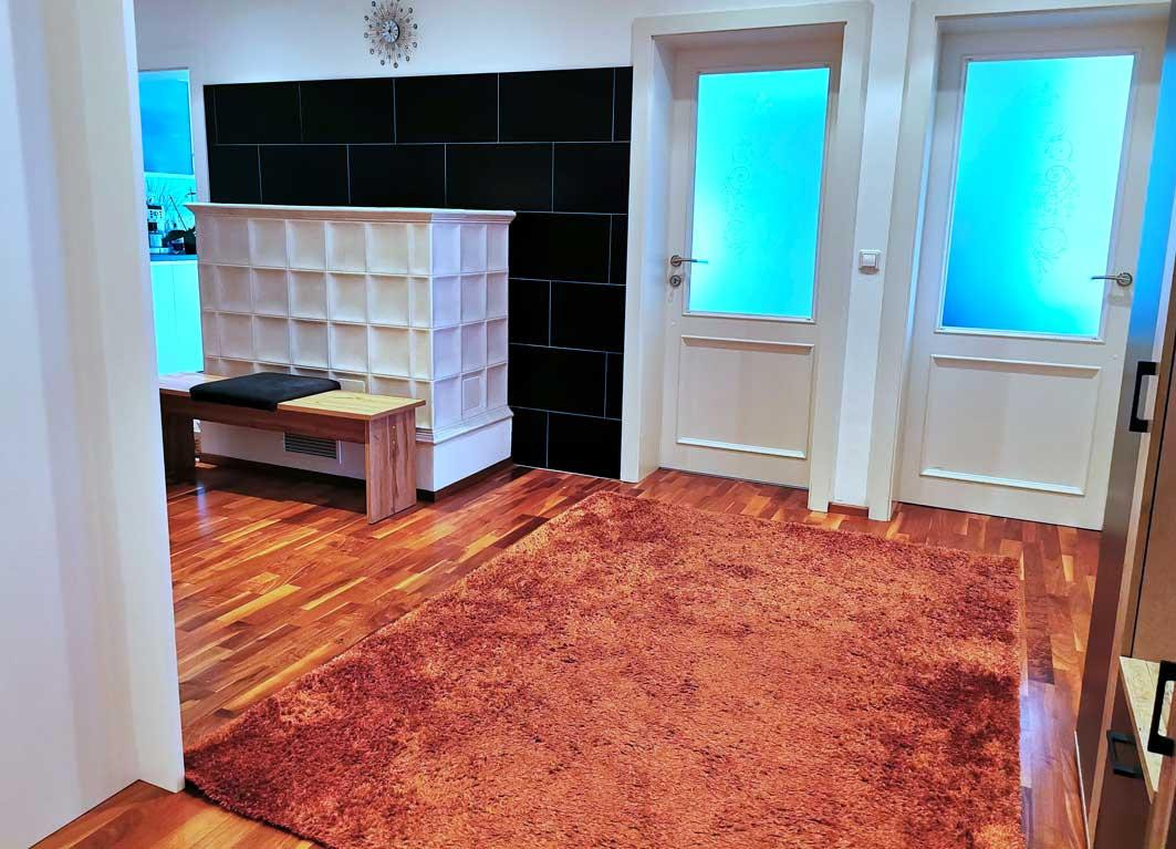 - hochwertiger Echtholz-Nussboden im Wohnzimmer