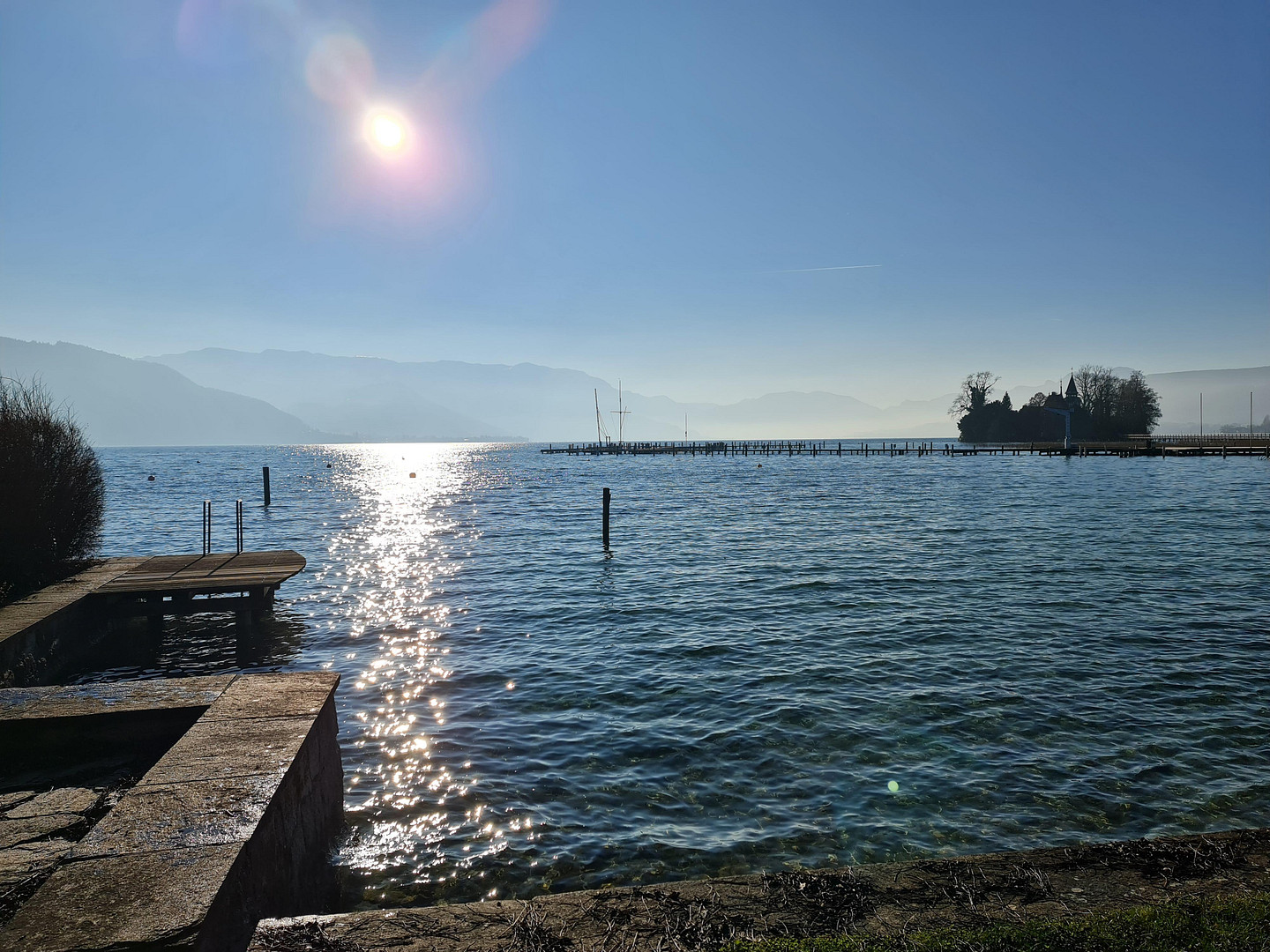 * Großzügiger, sonniger Eigengarten bis zum Seeufer – mit altem Baumbestand, ungestörter Privatsphäre und spektakulärem Panoramablick auf die Alpen