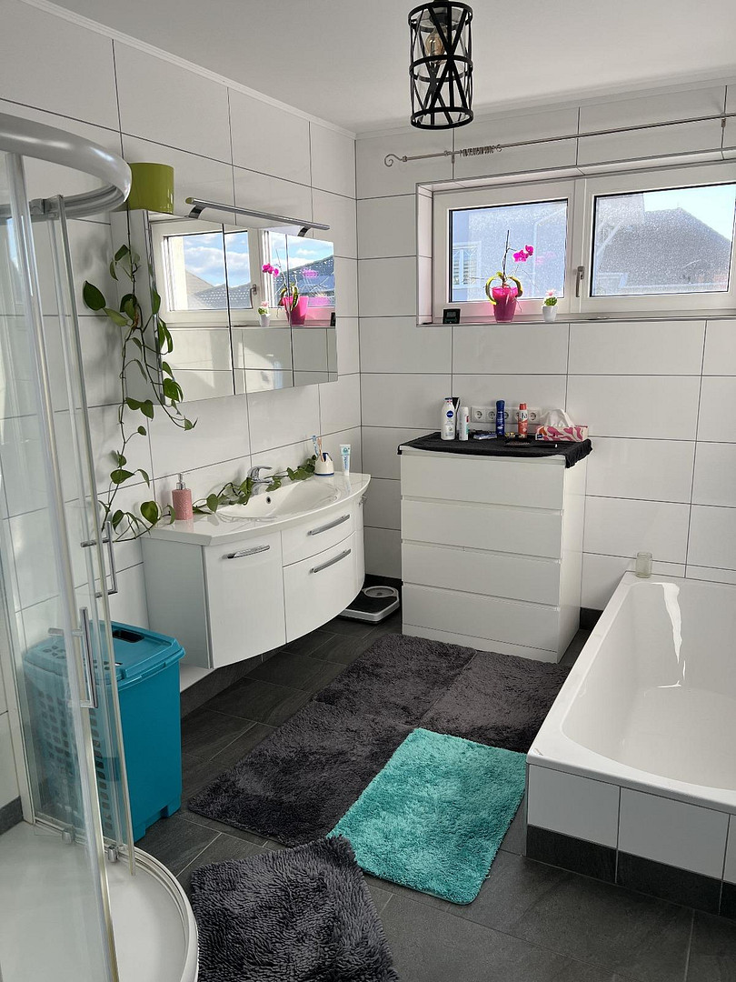 1 Badezimmer mit Bodenwanne & Eckrunddusche