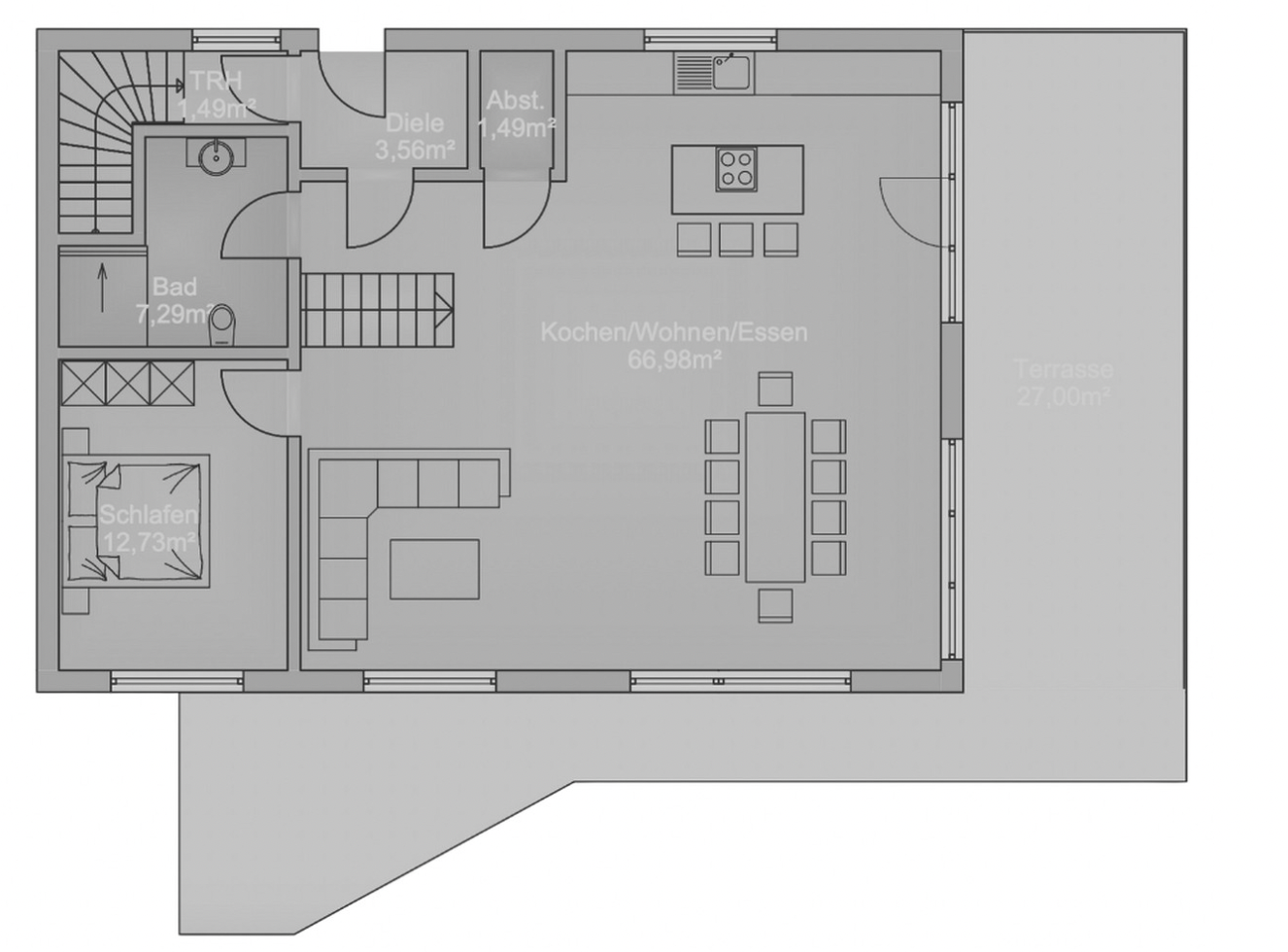 Ein weiterer großer Pluspunkt ist die separate Einliegerwohnung mit eigenem Eingang. Diese eignet sich ideal zur Vermietung, als Büro, Praxis, Gästebereich oder für Mehrgenerationenwohnen.