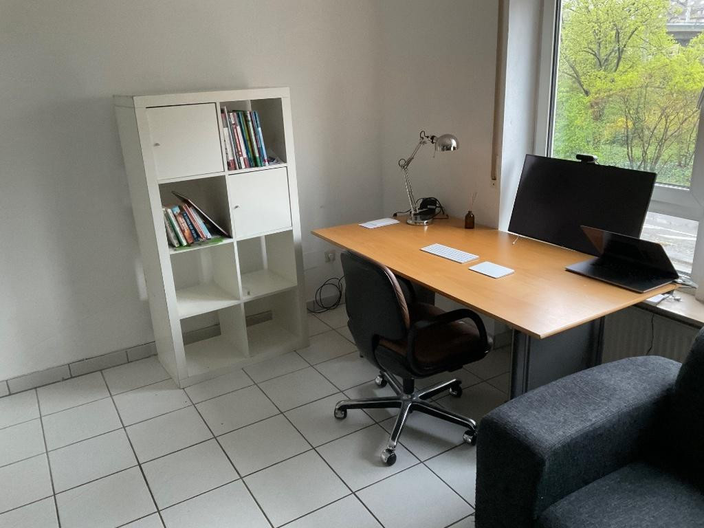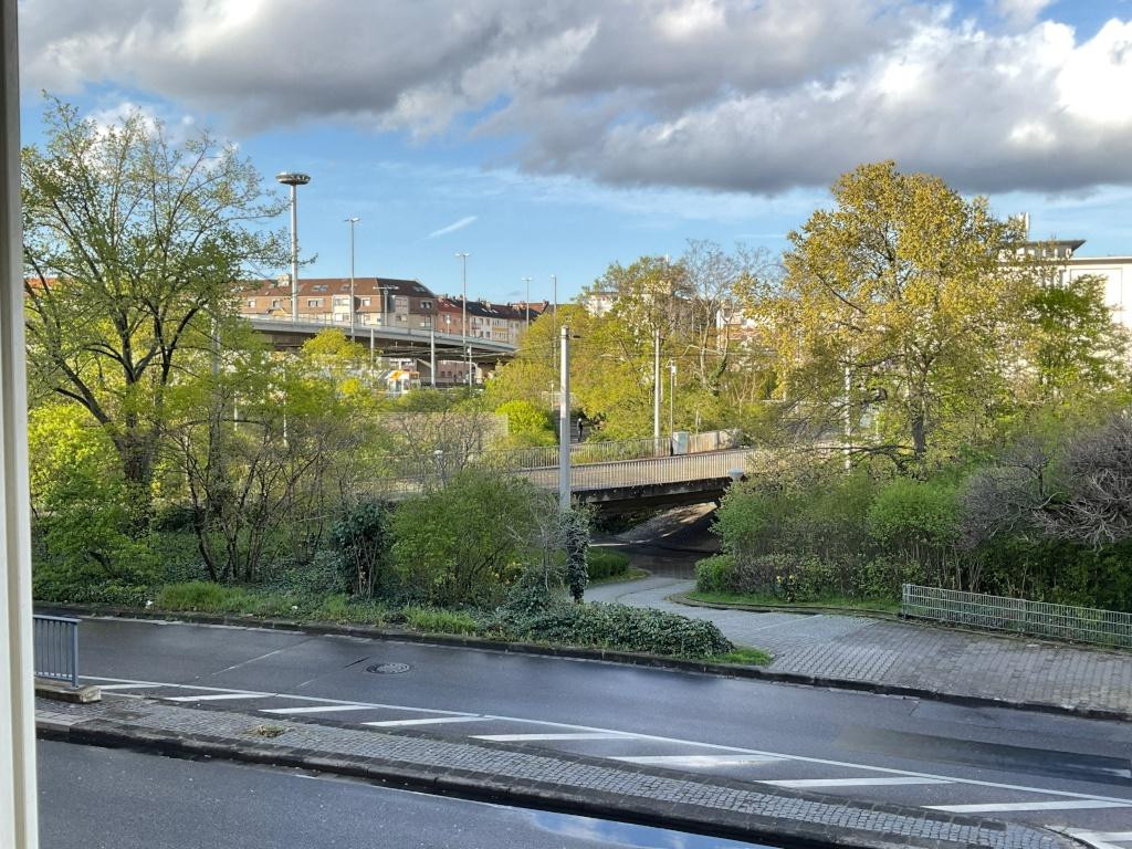 Die Straßenbahnhaltestelle Rheinstraße ist von der Wohnung aus sichtbar. Vor der Wohnung befindet sich eingroßer Park mit Bänken. Dort gibt es auch einen Basketballplatz.